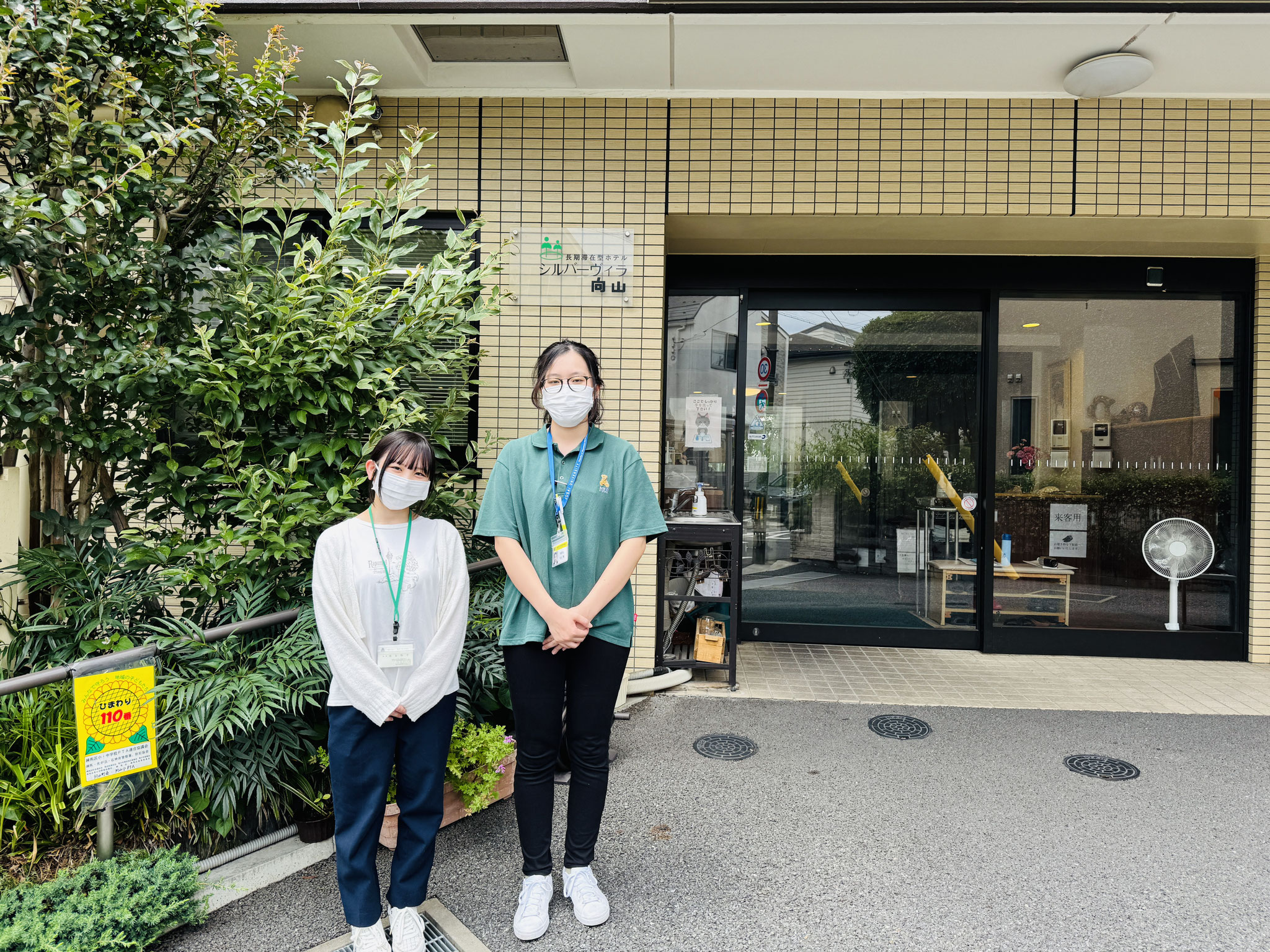 この秋、教職免許取得のための介護体験として大学生3名の受け入れを行いました。コロナ前は年間100名、延べ3,000人以上の大学生を受け入れてまいりましたが、コロナ禍で一時中断していたため、今回は久しぶりの受け入れです。他にも職業体験として中学生2名、さらにいつもお世話になっている「あすか薬局」さんで学ぶ薬学部の研修生2名も見学に訪れました。 介護体験では、配膳やお茶出し、洗濯物の配布、散歩の付き添い、レクリエーションのお手伝いなど、実際の生活の場に入りながら学びを深めましす。初日は緊張していた学生さんたちも、日を追うにつれ「歩く速さを合わせる」「声をかけるタイミングを考える」「目線を合わせて会話する」など、お客様に寄り添う姿勢が自然と身に付いていく様子が見られました。