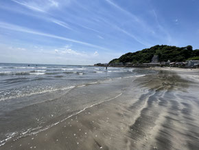 茅ヶ崎の海岸沿いで海と松に囲まれて